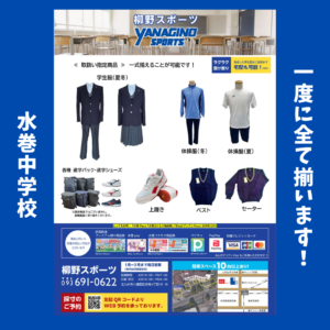 また今夏より、水巻中学校・水巻南中学校の制服ほか一式も取り扱いが始まりました!!