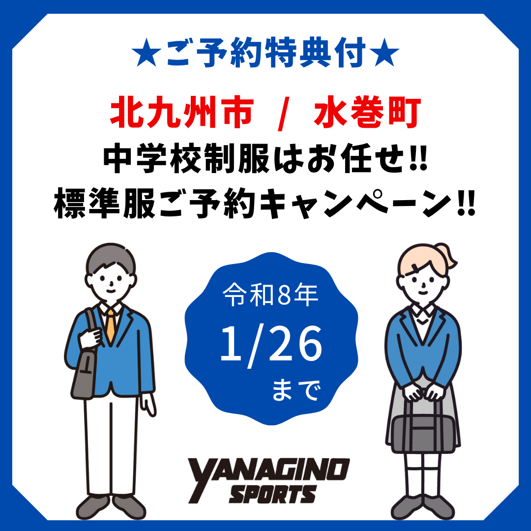 今年も新入生様(令和8年度入学)向けの中学校標準学生服ご予約キャンペーンを行っております!