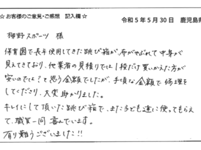 中古で買い直すよりも、今まで大事に使った跳び箱を、キレイにしてこれからも使い続けませんか?