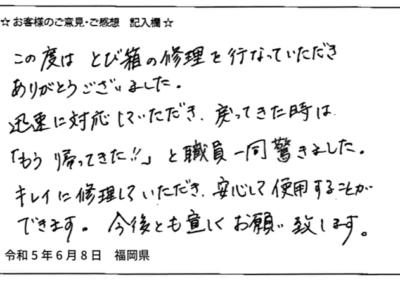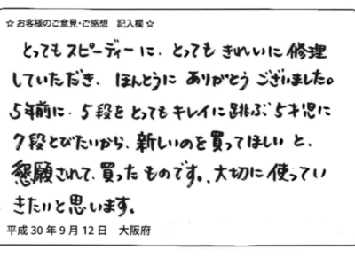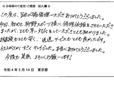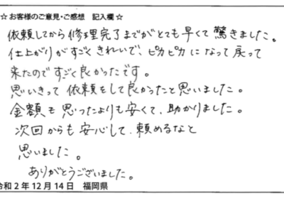 お客様から、当社に修理品を送る際の費用については、お客様のご負担で送付いただいております。